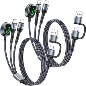 2Pack 4 in 1 iWatch & iPhone Charger for Travel, Multi Charging Cable for Apple Watch Charger Wireless USB C Micro Compatible with iWatch Ultra/SE/10/9/8/7/6/5/4/3/iPhone 16/15/14 Galaxy Android(4FT)