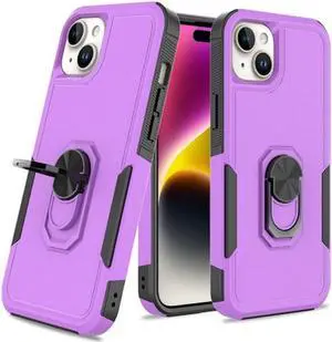 TUFF Shockproof Hybrid Armor Case with Ring Grip for iPhone 15 Plus - Purple