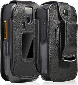 Black Vegan Leather Case with Belt Clip for GreatCall Jitterbug Flip Phone