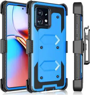 Tekcoo Holster Case For Motorola Edge+ 2023 | Moto Edge Plus 5G UW 2023 | Edge 40 Pro X40 | XT2301 [Tshell] Shock Absorbing [Kickstand Locking Belt Clip] Carrying Secure Swivel Full Body Cover - Blue