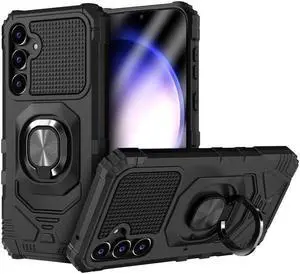 Military Grade Ring Holder Case with Camera Lens Cover for Samsung Galaxy S23 FE - Black