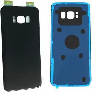 Back Battery Cover Door Rear Glass Housing Case with Adhesive For S8 Battery Cover Replacement (Black)