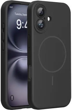 Compatible with iPhone 16 Case, [Soft Anti-Scratch Microfiber Lining], Compatible with MagSafe, Liquid Silicone Case Shockproof Drop Protection Phone Case for 16,Black