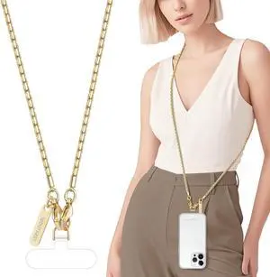 Metal Cell Phone chain Crossbody Phone lanyard with 2 Tether Tabs Detachable iPhone Chain Crossbody Strap Non-rusting Solid iPhone Lanyard for Women Girls Travel Shopping Party Camping
