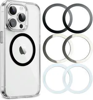 Universal Metal Rings Compatible with Magsafe Sticker Magnetic Ring for Phone Cases & Wireless Charging 6 Pack (2 Black 2 White & 2 Silver)
