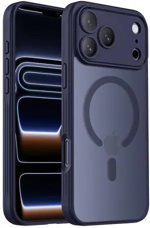 Magnetic for iPhone 17 Pro Case, (Compatible with Magsafe) (16FT Military Grade Protection) Full Camera Protection Anti-Fingerprint Slim Translucent Matte Phone Cover 6.3",Deep Blue