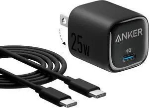 25W USB C Charger Block Compact and Foldable Supports PPS Fast Charging for Galaxy S24/Z Fold/Z Flip/Tab iPhone 17/16 Series iPad (Black 1pack with Cable)