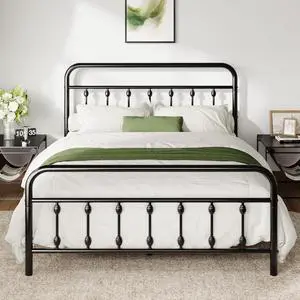 Allewie Queen Size Metal Platform Bed Frame with Victorian Style Iron-Art Headboard and Footboard, Easy Assembly, Under Bed Storage, No Box Spring Required, Black