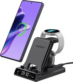 25W USB C Fast Charging Station for Samsung, SwanScout 701S, Foldable 3 in 1 Charging Dock Stand for Galaxy S25/S24/Z Flip 7/Fold 7/A56/A36/USB C Buds, Charger for Samsung Galaxy Watch Ultra/8/7/6/5