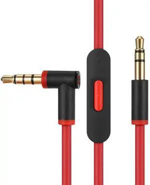 Replacement Audio Cable Cord Wire with in line Microphone and Control for Beats by Dr Dre Headphones Solo Studio Pro Detox Wireless Mixr Executive Pill (Black Red)
