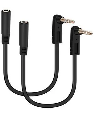 3.5mm to 3.5mm Audio Extension Cable 0.5FT 90-Degree Right Angle TRS 1/8 Male to Female Jack Aux Cord for Headphones Headsets Phones MP3 Car Stereo Systems 2-Pack (S to A M to F)