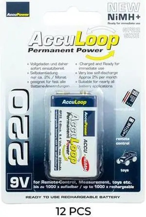 12-Pack 9 Volt AccuLoop NiMH Batteries (220 mAh)