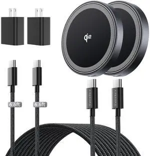 2 Pack 15W Qi2 Certified Magnetic Wireless Charger 6.6ft Cable, Fast Charging Pad for iPhone 17-12&Airpods Series(20W Adapter Included)