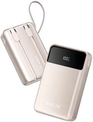 Portable-Charger-Power-Bank Travel Essentials Battery Pack USB C 30000mAh Built in Cable 22.5W Phone Fast Charging Powerbank Compatible with iPhone 16 15 14 13 12 11 iPad Google Xiaomi (Gold)