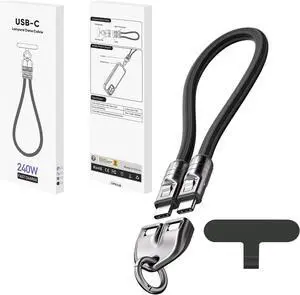 2PCS 240W USB C to C Charging Cable, 5A Fast Charging Cable with Wearable Bracelet Design, Crossbody Wrist Strap Lanyard, Portable Fashion Fast Charger Cable for Phone (04,0.3m/11.81in+1.2m/47.24in)