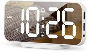 Digital Alarm Clock for Bedroom,6.7" LED Clock Mirror Surface with 2 USB Charger Port,Adjustable Brightness,Dual Alarm,Snooze,12/24H,Large Display Clock for Room Decor(White)