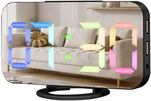 Digital Alarm Clock,Large Display LED and Mirror Desk Clock with Dual USB Charger Ports, 3 Levels Brightness,12/24H Alarm Clocks, Modern Electronic Clock for Bedroom Living Room - Black RGB