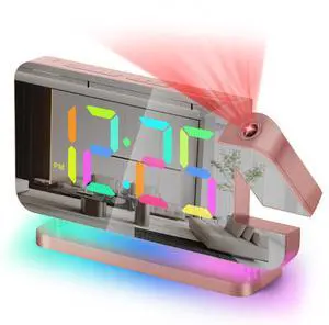 Projector Clock,7.4 in Digital Alarm Clocks Projection on Ceiling Wall,with RGB Night Light,USB C Charging Port,Auto Dimming,LED Mirror Clock for Teen Girl Adults Bedroom Decor - Rose Gold