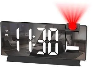 Projection Alarm Clock with 180° Rotatable Display, Digital Mirror Clock with Auto Dimmer, 4 Adjustable Brightness Levels, Snooze, 12/24H Format for Bedroom, Office, Home