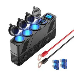 12V Socket Power Outlet, 10FT Cable 24V 216W Multi Port Outlet, 12 Volt Car Cigarette Lighter Adapter USB Charger Cigarette Lighter Socket, Power Supply Car Plug outlet Battery Adapter