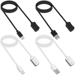 4pcs Magnetic Charging Cable for Galaxy Fit 3 Smart Watch 3.3ft/100cm USB-C & USB-A Replacement Magnet Charger Dock Fast & Safe Smartwatch Charger Cord Accessories (White Black)
