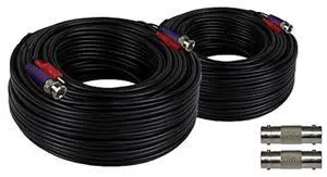 2-Pack 150 Feet Pre-Made All-in-One Siamese BNC Video and Power CCTV Security Camera Cable with Two Female Connectors for 960H & HD-CVI Camera and DVR (SCABLEHD150B-2pack)
