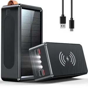 Power Bank 49800mAh Solar Portable Charger Wireless Charging USB-C 15W Fast Charging with 4 Built-in Cables LED Flashlight Battery Pack Compatible with iPhone, iPad, Galaxy, Perfect for Camping
