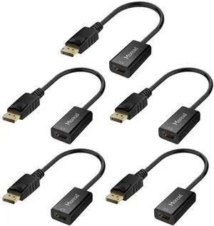4K DisplayPort (DP) to HDMI Adapter, 5 Pack, Uni-Directional Gold-Plated Display Port Computer to HDMI Screen Converter (Male to Female) Compatible with HP, Dell, Lenovo & More, Passive - Black