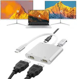 USB C to Dual HDMI Adapter 4K @60hz, Type C to HDMI Converter for MacBook Pro Air 2020/2019/2018,LenovoYoga 920/Thinkpad T480,Dell XPS 13/15/17,etc