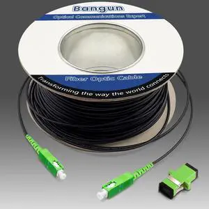 50 Meters Outdoor Armored SC/APC to SC/APC Fiber Optic Internet Cable, Low Friction Single Mode Patch Cable, Fiber Optic Jumper Optical Patch Cord, SIMPLEX, 9/125um, OS1/OS2 Compatible, LSZH Black