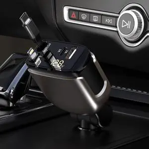 Retractable Car Charger USB C, 93W Fast Charging Car Charger Adapter with Voltage Display, [QC3.0 & PD 45W] 12-24V Cigarette Lighter USB Charger Adapter for iPhone 17 16 Galaxy iPad Android