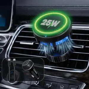 Qi2-Certified 25W Fast Wireless Car Charger, for MagSafe compatible Charger Car Mount with Cooling Fan, Strong Magnetic Car Vent Charger, Upgraded Secure Vent Mount Charger for iPhone & Android