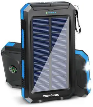 Solar Charger Power Bank - 36800mAh Solar Phone Charger, QC3.0 Fast Charger with LED Flashlight, IP65 Waterproof Portable Power Bank for Outdoor Activities (Blue)