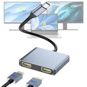 HDMI Splitter for Dual Monitors, Dual HDMI Adapter for 2 Monitors with USB3.0, 100W PD, HDTV Splitter Extended Display, USB C Hub Multiple Port, Laptop Docking Station for Dell/HP/Mac