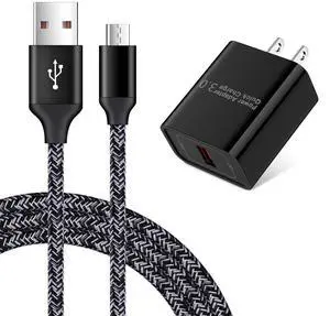 Quick Charge 3.0 Fast Charging Block Wall Charger with 3ft Micro USB Cable Android Fast Charger for Samsung Galaxy S7 S6 Edge A10 A9 A6 J7 J3,LG Stylo 3 2 K30,Moto E7 E6S E6 E5 E4 G5S G4,Kindle fire