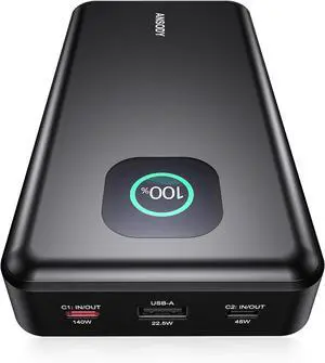 140W Power Bank, 27000mAh 3-Port Portable Laptop Charger, Smart Digital Display, 140W USB C Fast Recharge, PD3.1 Battery Pack for iPhone, MacBook, iPad, Samsung, Steam Deck etc