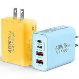 [2-Pack] USB C Charger Block, USB C Wall Charger 40W 4-Port Fast Charging Block PD Power Adapter + QC Wall Plug Multiport Type C Block Cube for iPhone 15 14 13 12 11 Pro Max XR XS 8 7, Samsung