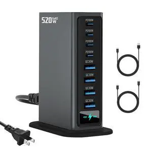 520W USB C Charger Block | 8 Ports GaN Fast Charging Station Hub|PD 100w Type C & USB A Laptop Cell Phone Charger Adapter | for MacBook Air/Pro, iPhone, iPad, Game Consoles | Travel Home Office Use