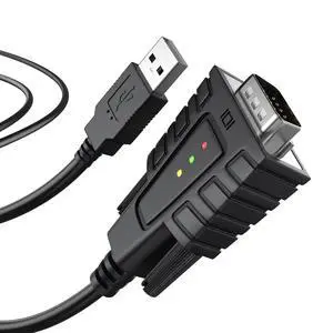 USB232A-B-A | USB to Serial RS232 DB9 Adapter Cable with 3 x LED Indicators Compatible with Windows 11, macOS 15, Linux (3FT, Male/Male)