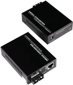 A Pair 2 Pack Multi-Mode Dual SC Fiber Gigabit Fast Ethernet Media Converter, Mini 1x 10/100/1000Base-T RJ45 to 1000Base-SC Slot Converter Transceiver, up to 2KM 850-1310-nm, AC 100V~240V