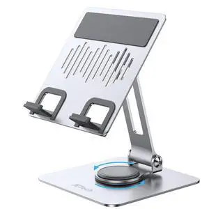 Tablet Stand, Adjustable Swivel Desktop Holder with 360 Degree Rotating Base, Foldable Cradle for iPad/iPad Pro/Air/Mini, Galaxy Tab A8/A7 Lite/A7/S8/S7, Tab/Phones(4-11"), Silver