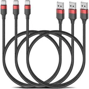 3ft USB C Cable 3 Pack USB A to USB C Cable for iPhone 16 15 Nylon Braided Type C Charger Cord Fast Charging for Galaxy S25 S24 S23 S22 Ultra Pixel 10 9