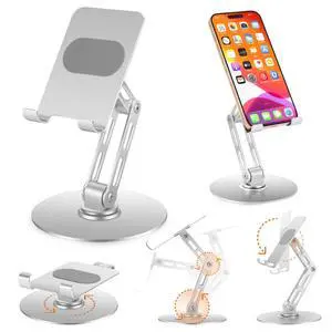 Cell Phone Stand 360° Rotatable & Height Adjustable - 25KG Super Load-Bearing, Foldable Desk Stand for Phone, Compatible with iPhone 17/16/15/14, Nintendo Switch, Silver