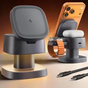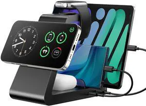 Charging Station for iPhone,5 in 1 Wireless Charger Stand Dock for Apple: Mag-Safe Charging Station for Multiple Devices Apple iPhone 17 16 15 14 13 12 Pro Max Plus iWatch Airpods