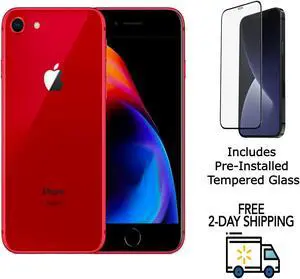 Apple iPhone 8 A1863 (Fully Unlocked) 256GB Red (Grade A+) w/ Pre-Installed Tempered Glass