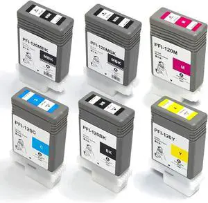 Compatible for Canon PFI-120 PFI-120MBK PFI-120BK PFI-120C PFI-120M PFI-120Y Ink Cartridges for Canon imagePROGRAF TM-200 TM-205 TM-300 TM-305 6-Pack 130ML