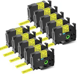 10 Pack Compatible for Brother P-Touch TZe651 TZ651 Label Maker Tape 24mm 0.94" Black on Yellow Laminated TZe-651 TZ-651 Label Tape for PT-E500 PT-E500VP PT-E550W PT-E550WVP PT-H500LI