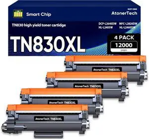 TN830XL High Yield Toner Cartridge 4-Pack With Chip Replacement for Brother TN830XL TN830 Black Toner Cartridge work for HL-L2405W HL-L2400D HL-L2465DW HL-L2865DW MFC-L2820DW MFC-L2900DW printers