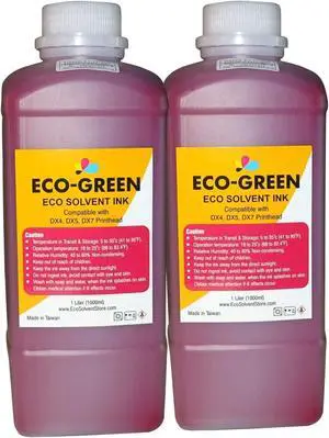 Eco Solvent Ink for Wide Format Commercial Sign Printers Using DX4 DX5 DX7 DX9 DX10 DX 11 XP600 TX800 I3200 Printhead, Mimaki, Roland, Mutoh, Will NOT Work with Desktop Printers. (2 Magenta)