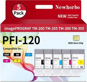 PFI120 Ink Cartridge Replacement for Canon TM205 TM300 TM305 Printer (Black Matte Black Cyan Magenta Yellow 5-Pack)